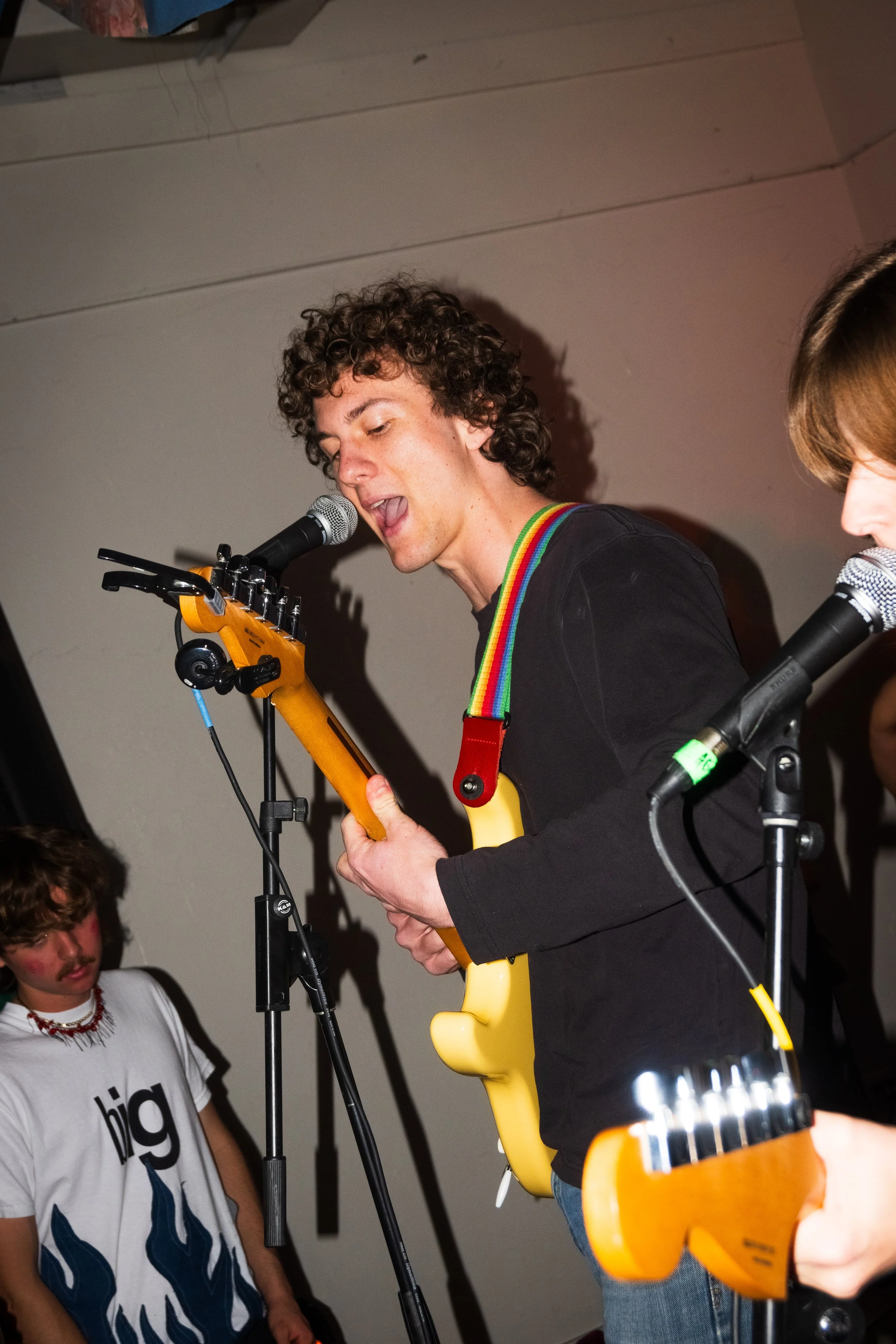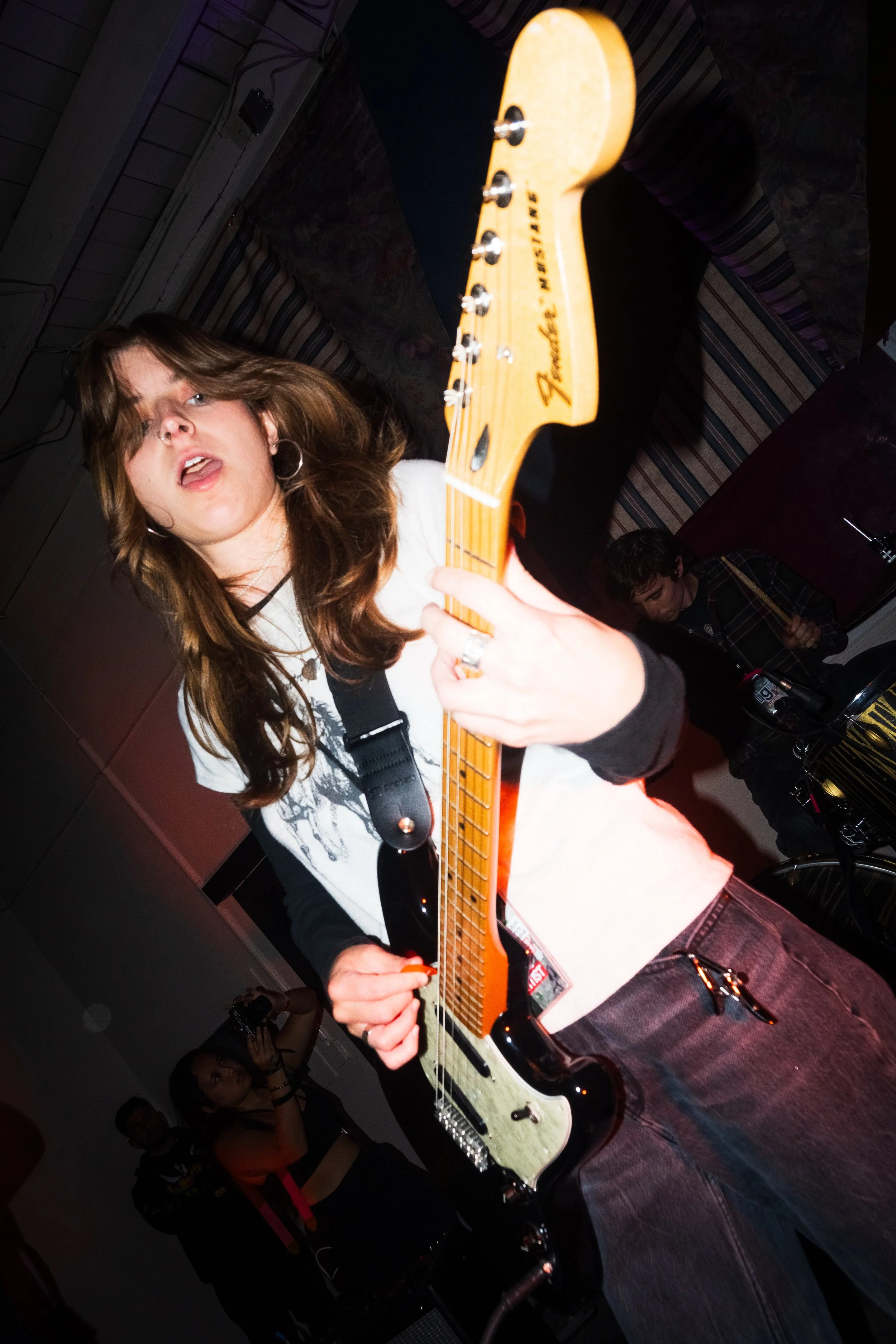 “I started the band,” Ella said. “We went through a bunch of members and ended up with these guys. It just clicked and we’ve hit it off ever since.” Theo and Shane, both from the same suburb near Tampa, realized they’d gone to adjacent high schools before meeting in the band. Ella grew up in Boca Raton, but Gainesville—where all three now study at the University of Florida—became their creative home. They’re signed to Swamp Records, UF’s student-run label, and have become a fixture in the local scene for their emotionally honest lyrics, DIY approach, and strong community ties.